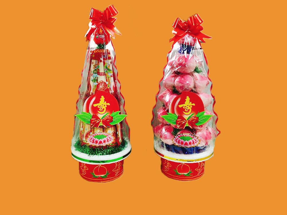 給神明送上最誠意的祝福,三十顆飽滿又大顆的壽桃, 從底部向上,緊緊地相黏在一起, 十包好吃的壽麵,一路向上, 頂部還有兩顆壽桃形狀的甜滋滋果凍,絕對誠意十足!!! ※請提前一星期預購喔※ ※商品都是全素,您可以安心預訂※ ※此商品無法宅配※